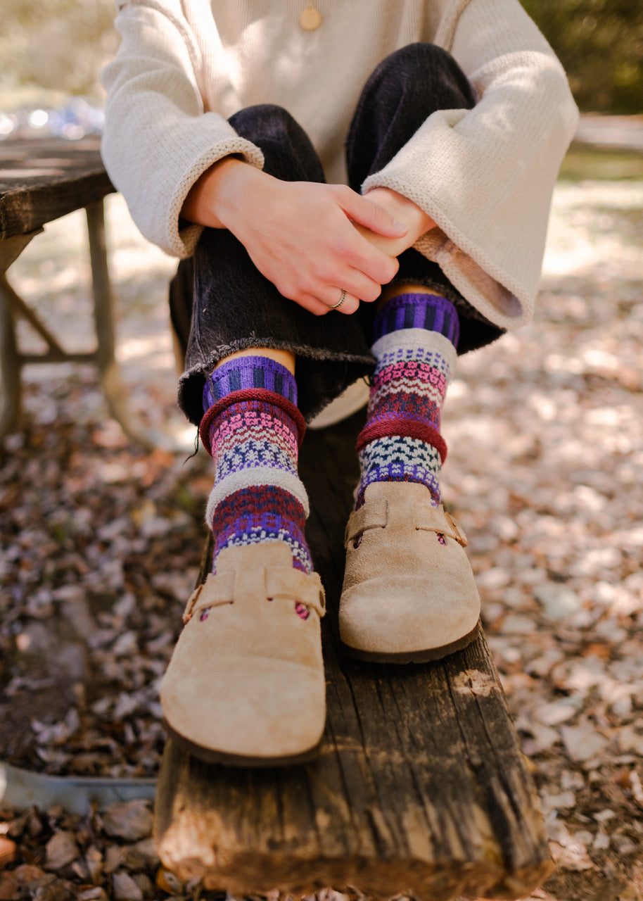 最新ソックスコレクション「ワンダーランド / Wunderland」は、リサイクル糸を使用し、あふれるカラーと心地よいぬくもり、そして個性をたっぷり詰め込んだ一足です。ディープパープルやマリン、深みのあるポメグラネート、そして遊び心あふれるフューシャまで。それぞれの色が絶妙な“ミスマッチ・ハーモニー”で織りなされています。
