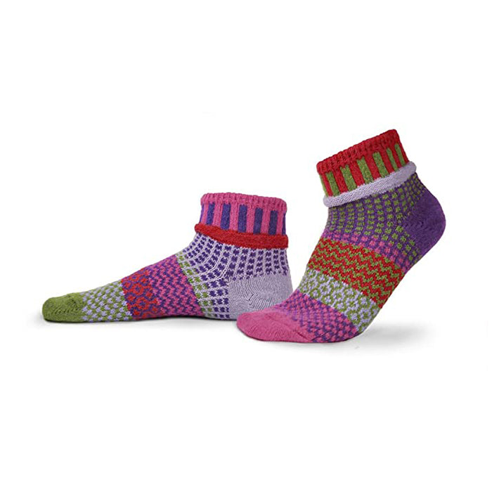 大人気!ソルメイトのアイコン、クルーソックスです。高品質なミッドウェイトコットンのリサイクル糸が柔らかく足を包み込みます。耐久性に優れているので洗濯を繰り返しても型崩れや色落ちしにくく驚くほど長持ち。まるで履くアートピースのような、細部までこだわった左右非対称のデザインとカラーリングは一足一足がユニーク。足元から楽しい気分になれるソックスはギフトとしてもおすすめです。